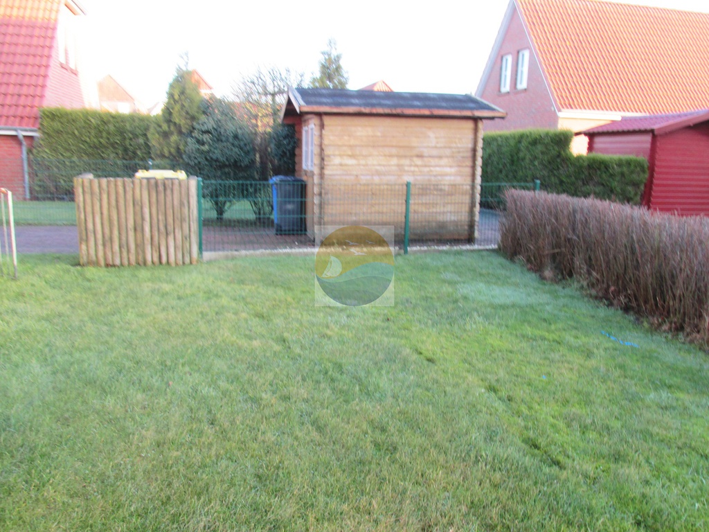 Die Terrasse ist mit hochwertigen Gartenmöbeln und Grill ausgestattet. Der große, eingezäunte Garten macht das Haus besonders hundefreundlich. Ein Autostellplatz befindet sich direkt am Haus.