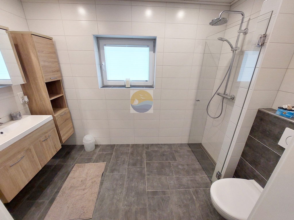 Im Erdgeschoss liegt zudem ein Schlafzimmer mit Boxspringbett sowie ein Badezimmer mit ebenerdiger Dusche und WC. Im Obergeschoss finden Sie zwei weitere Schlafzimmer: eines mit Boxspringbett, das andere mit einer Schlafcouch (für 2 Personen). Auf dieser Etage steht ein zweites Badezimmer mit Dusche und WC zur Verfügung. Kinderbett und Wickelmöglichkeit sind vorhanden. Der Garten ist von einer dichten Hecke umschlossen; ein großzügiger Carport bietet Platz für Ihr Auto. Das Haus liegt in einer ruhigen Siedlung im Ortsteil Nesse; der Strand von Neßmersiel ist in etwa 4,5 km erreichbar.