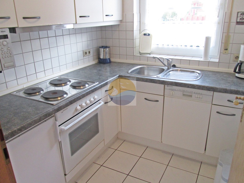 Küche mit Spülmaschine, Backofen, Mikrowelle, Gefrierfach, Wasserkocher, Filterkaffeemaschine, Toaster
