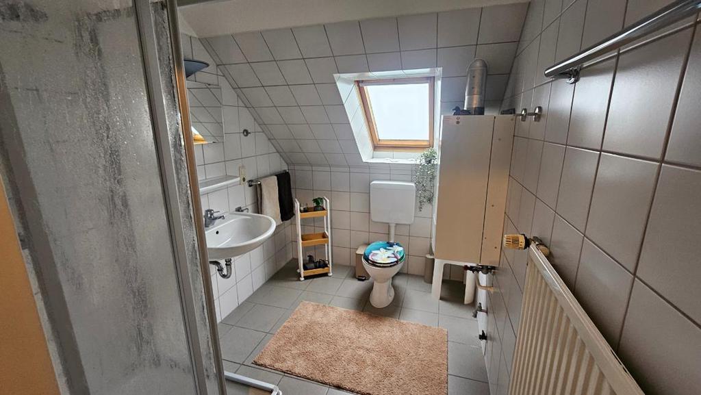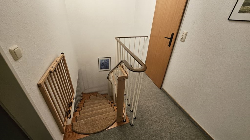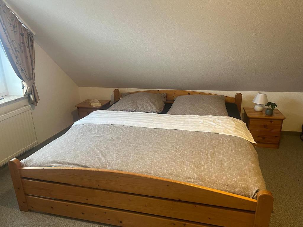 Im Obergeschoss erwarten Sie zwei Schlafzimmer: eines mit Doppelbett, das andere mit zwei Einzelbetten. Das Badezimmer ist mit Dusche und WC ausgestattet.