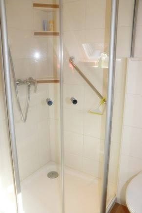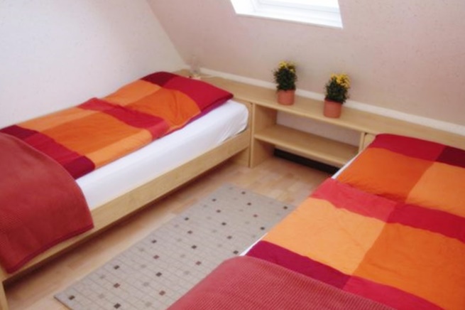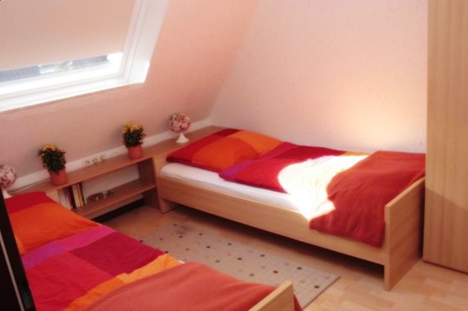 Im Obergeschoss erwarten Sie zwei Schlafzimmer mit jeweils zwei Einzelbetten, Kleiderschrank und Nachttischen. Das Badezimmer ist mit Dusche und WC ausgestattet. Der Außenbereich umfasst eine Terrasse mit Südwestausrichtung, Gartenmöbel, Sonnenschirm und Liegestühle. Fahrräder können in der Garage abgestellt werden, das Grundstück ist komplett eingezäunt.
