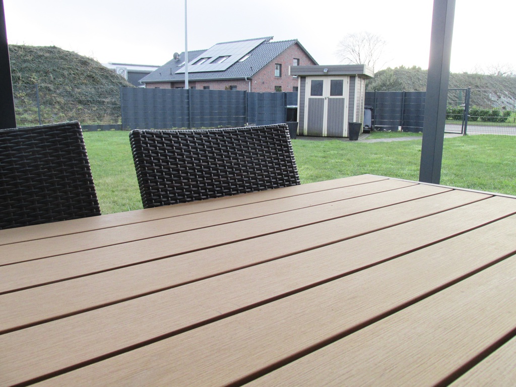 Im Sommer wird die großzügige Terrasse mit eingezäuntem Garten zum Lieblingsplatz. Hier können Sie in Ruhe frühstücken, grillen oder einfach die Sonne genießen, während sich Ihr vierbeiniger Begleiter sicher im Garten aufhält. Gartenmöbel mit Auflagen sowie ein Grill stehen selbstverständlich für Sie bereit.