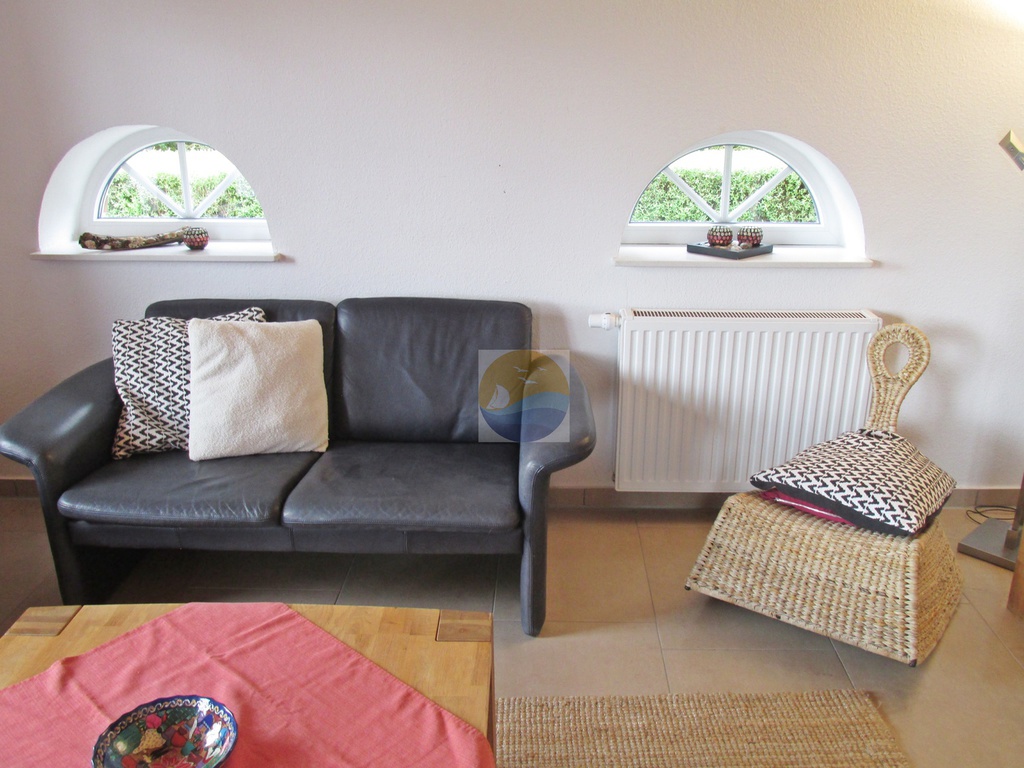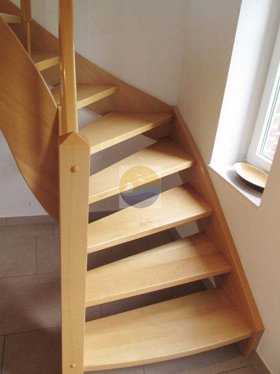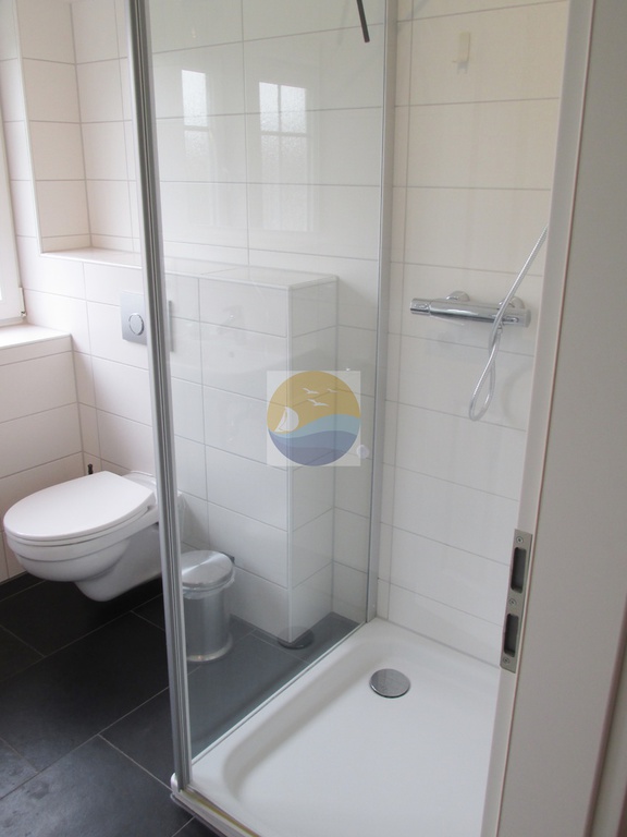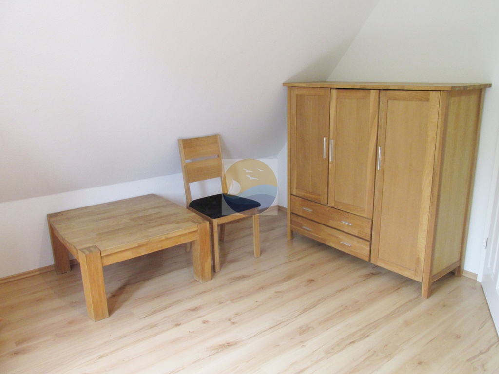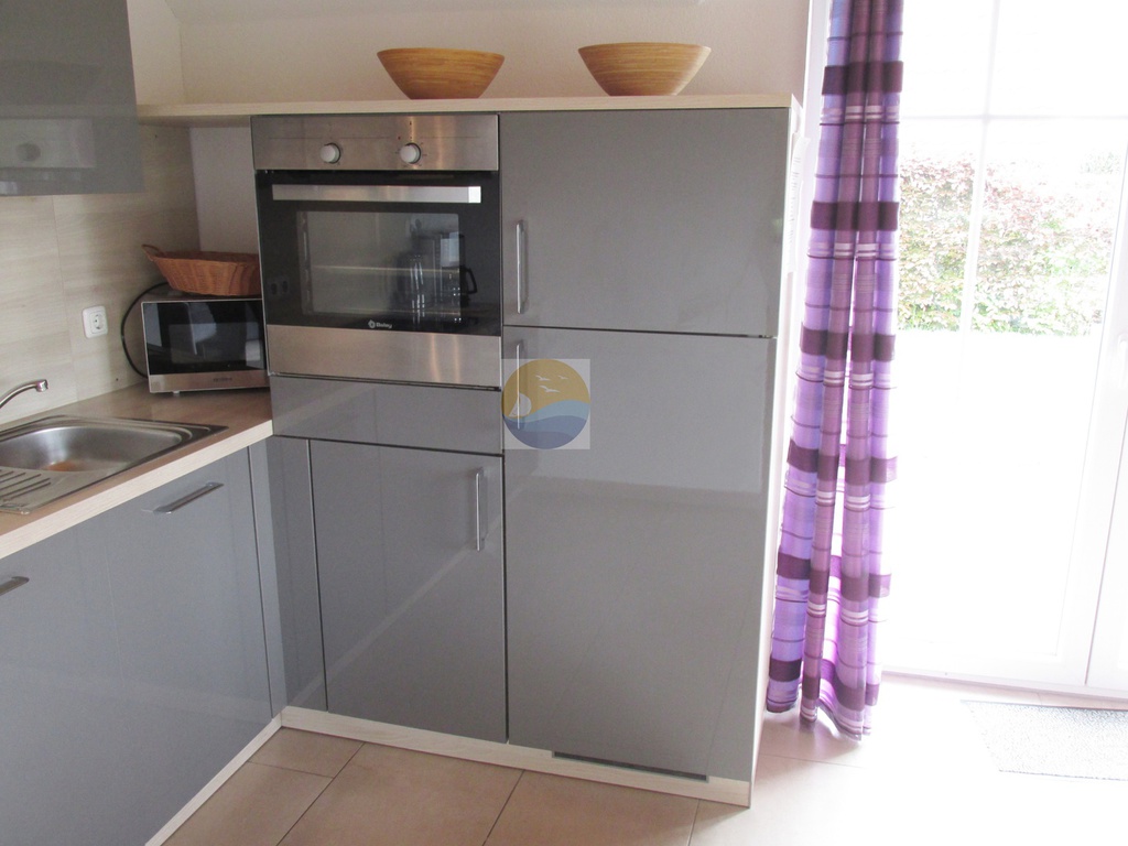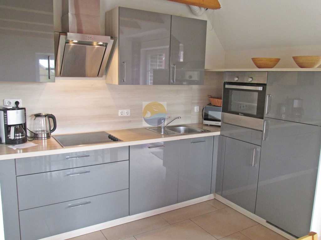 Im Erdgeschoss befindet sich die moderne, komplett ausgestattete Küche mit gemütlichem Essplatz. Direkt angrenzend liegt das helle, geräumige Wohnzimmer mit Zugang zur möblierten Terrasse. Ein Schlafzimmer mit Doppelbett sowie ein Badezimmer mit Dusche und WC runden die Etage ab. Für zusätzlichen Komfort steht eine Waschmaschine bereit.