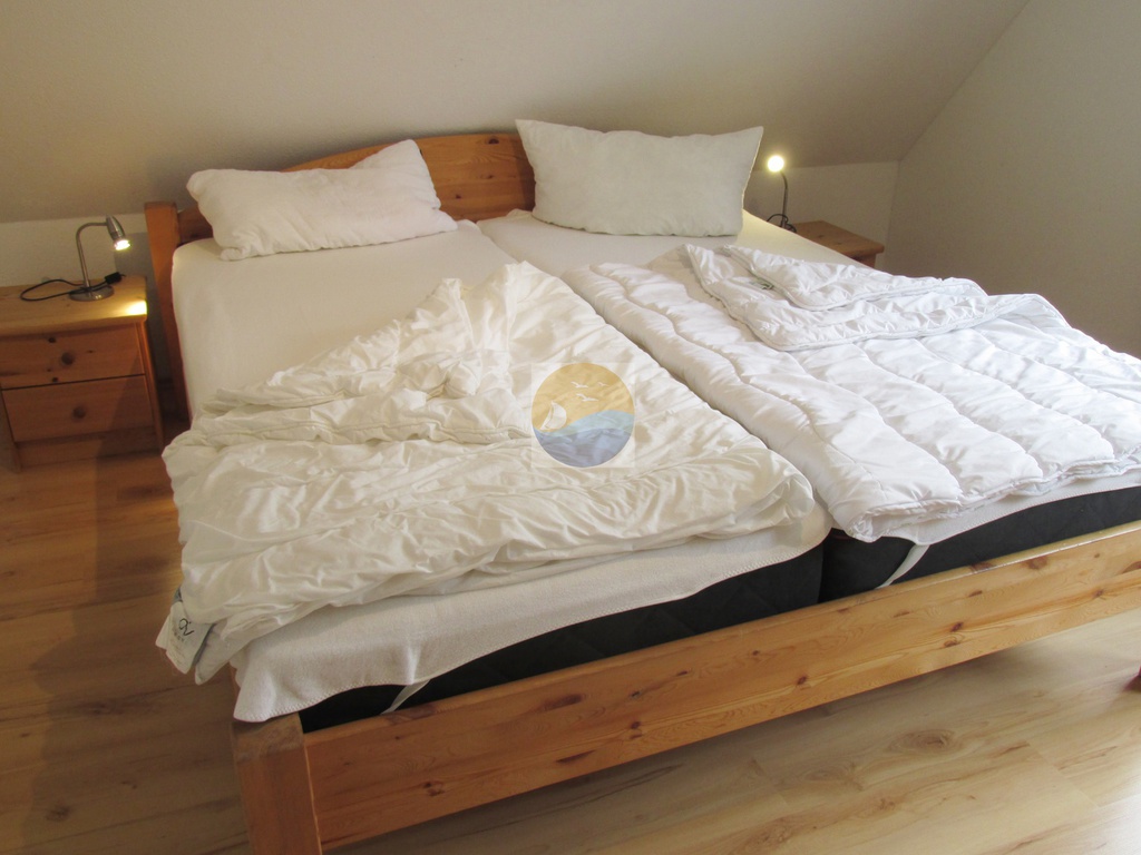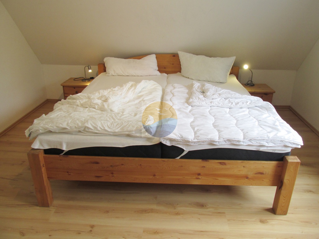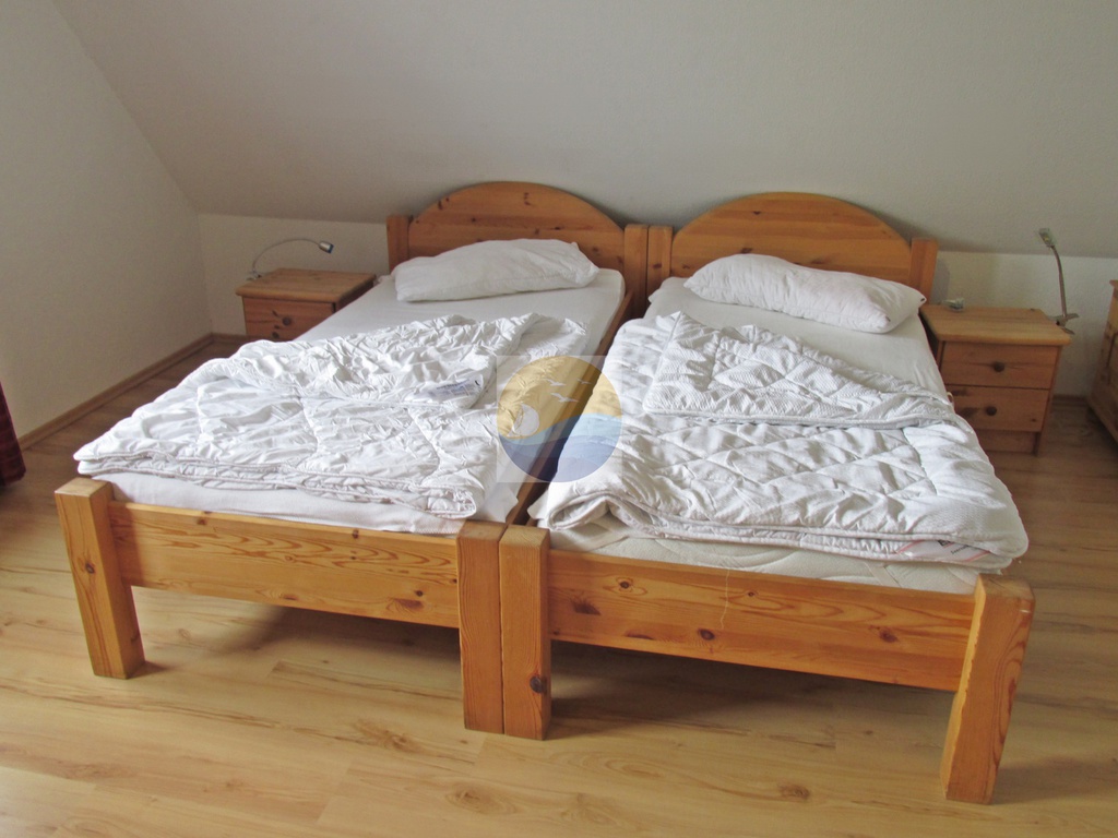 Im Obergeschoss finden Sie zwei weitere Schlafzimmer, jeweils mit zwei Betten, sowie ein zweites Badezimmer mit Dusche und WC – so beginnt der Tag entspannt und ohne Gedränge.