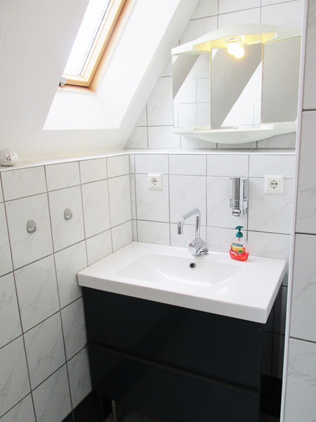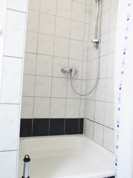 Dusche sowie einen Hauswirtschaftsraum mit Waschmaschine.