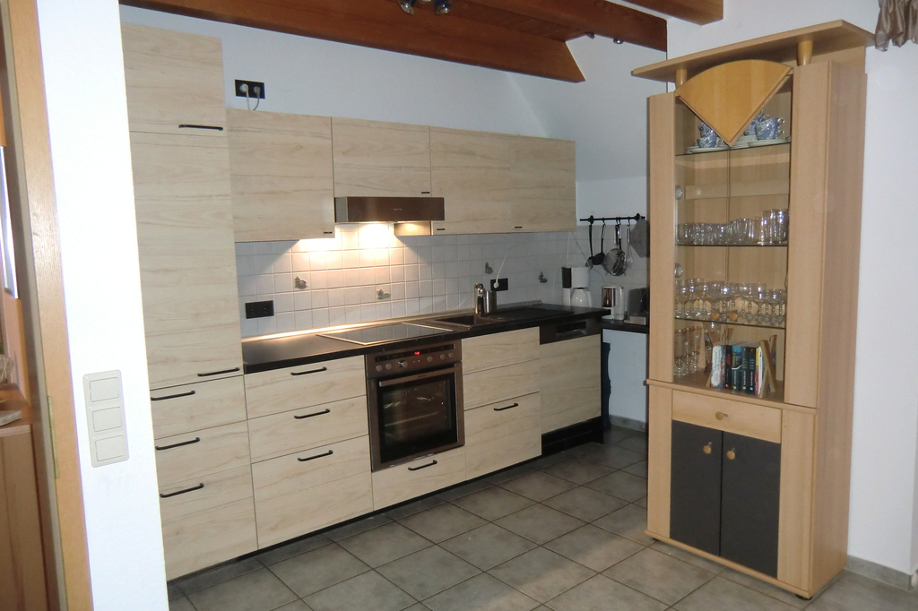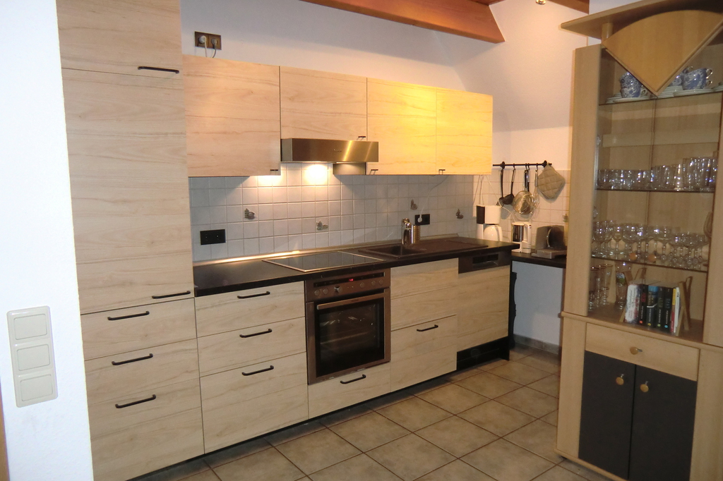 Im großzügigen Erdgeschoss erwartet Sie ein kombinierter Wohn- und Essbereich mit gemütlicher Essecke, einer Couchecke und einem Kamin, der besonders an kühleren Tagen für wohlige Wärme sorgt. Die Küche ist überdurchschnittlich gut ausgestattet und lässt keine Wünsche offen – von Backofen und Spülmaschine über Raclette-Grill, Crêpe-Maker, Waffeleisen bis hin zu einer Küchenwaage ist hier alles vorhanden. Für Unterhaltung sorgen Bücher, Spiele und Spielzeug für Kinder.