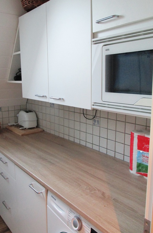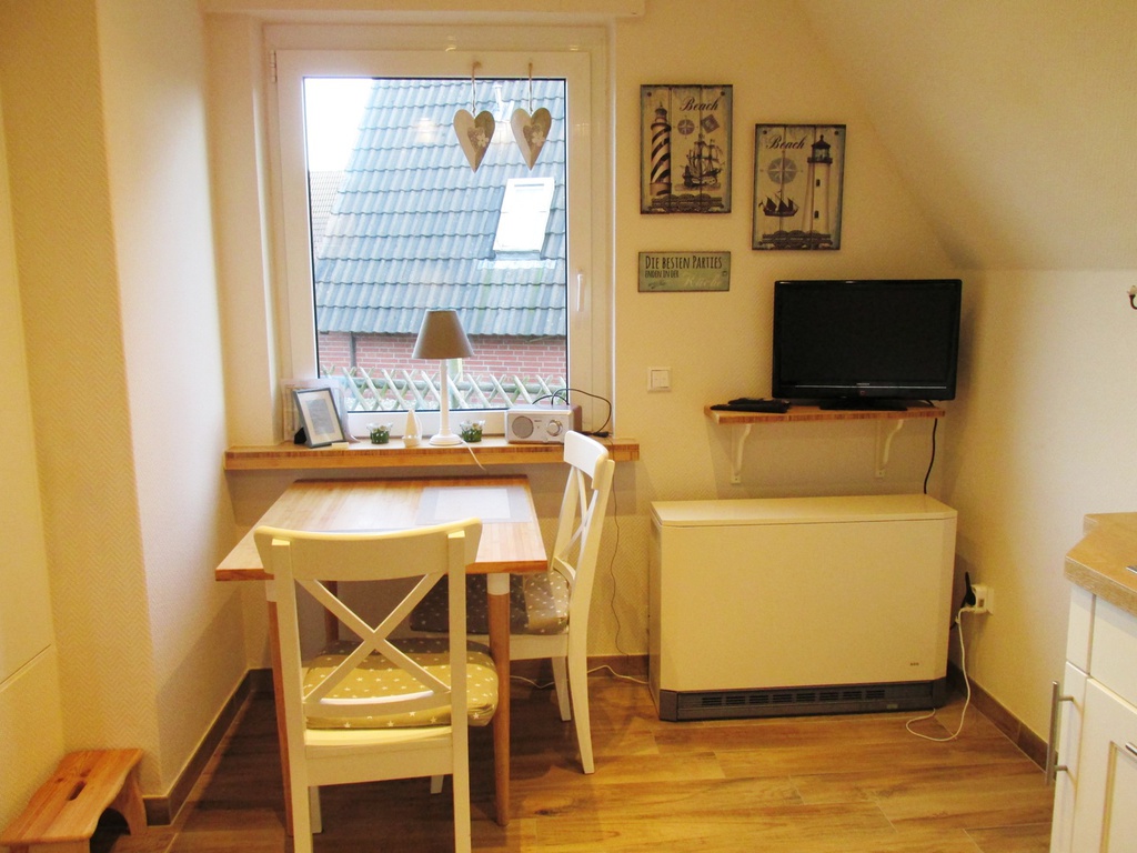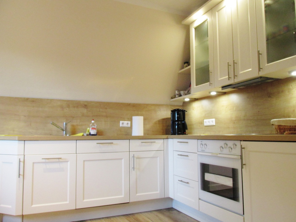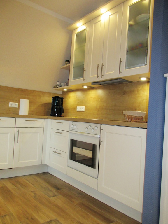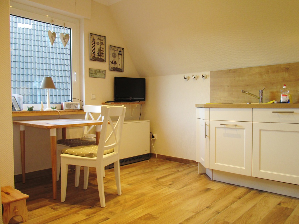 Im Erdgeschoss finden Sie die freundliche Küche mit moderner Ausstattung und Spülmaschine. Eine kleine Sitzecke mit TV sorgt hier schon beim Frühstück für Unterhaltung. Ebenfalls im Erdgeschoss liegt ein Badezimmer mit Dusche/WC.
