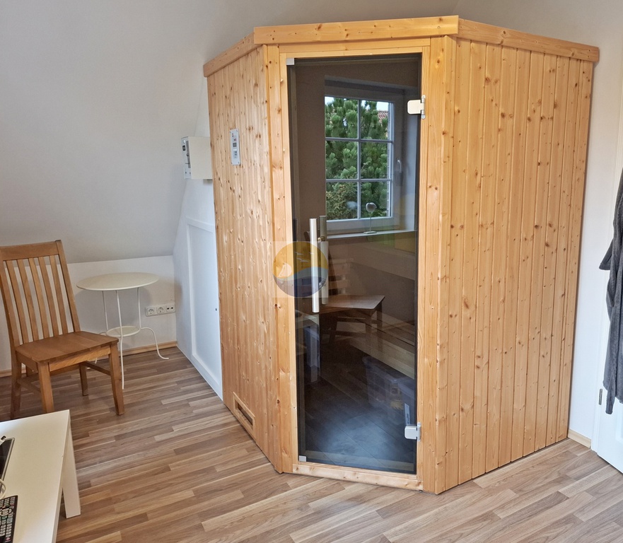 Sauna, Trockner, Jalousien in den Schlafzimmern, Fliegengittertür im Schlafzimmer unten |