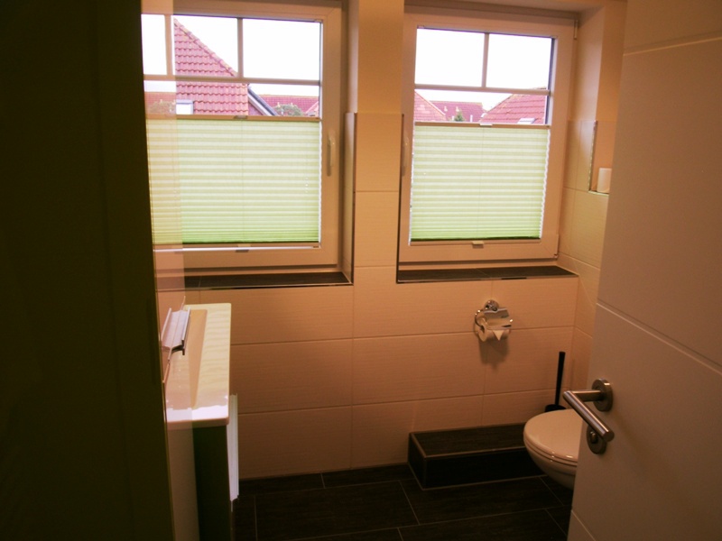 Das Obergeschoss bietet ein weiteres Schlafzimmer mit Doppelbett sowie ein Schlafzimmer mit zwei Einzelbetten. Auch ein zweites Badezimmer mit Dusche und WC steht hier zur Verfügung. Wickelkommode und Kinderbett machen das Haus besonders familienfreundlich. Waschmaschine und Spülmaschine sind selbstverständlich vorhanden.